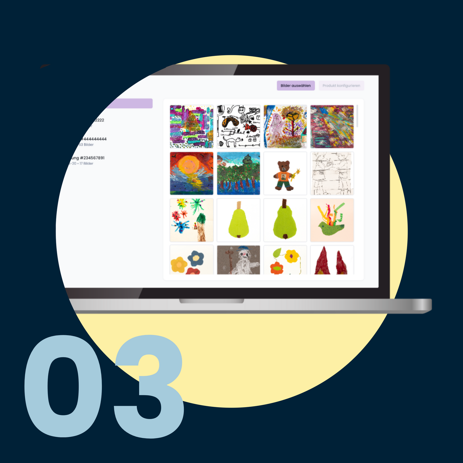In deinem Konfigurator findest du alle digitalisierten Kunstwerke – und in bester Qualität. Jetzt beginnt der kreative Teil: Ob Bilderbuch, Wandbild oder gleich mehrere Produkte – du entscheidest! Wähle deine Lieblingsbilder, ordne sie nach deinen Wünschen an und gestalte so dein persönliches Erinnerungsstück.
